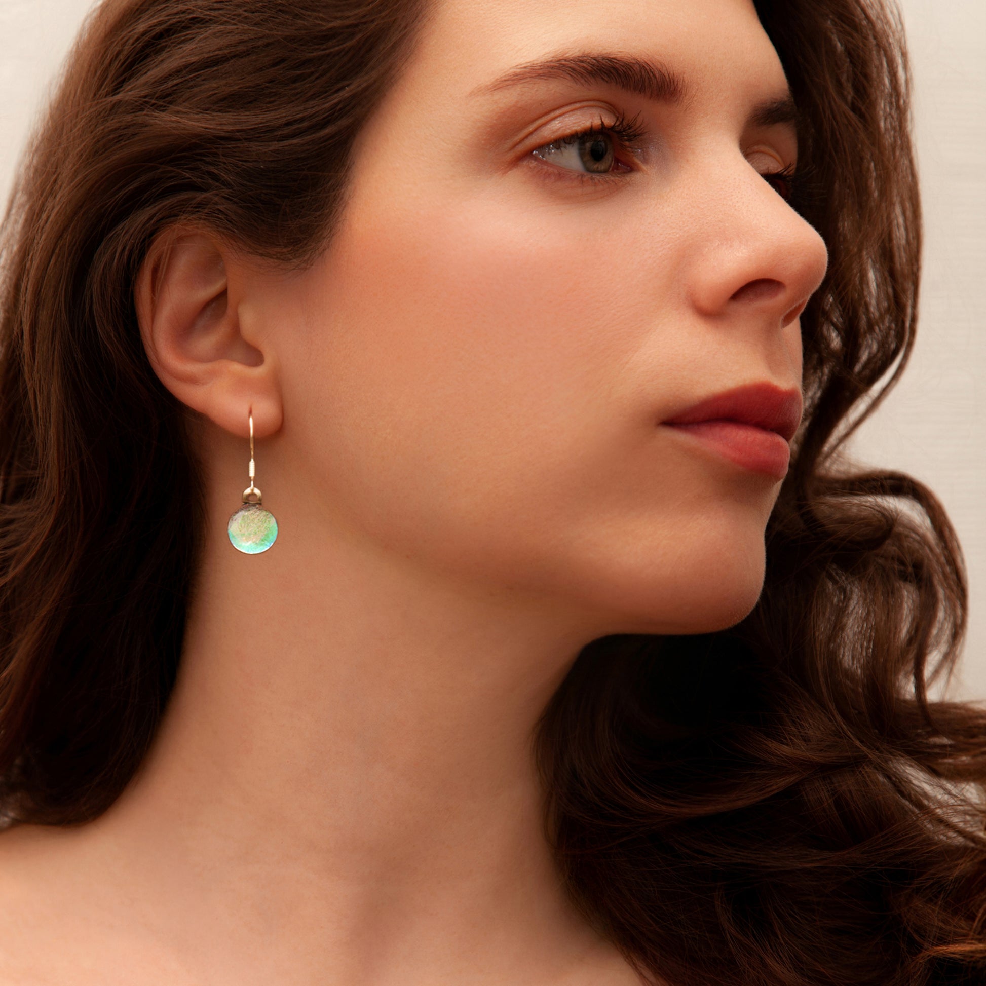 Celebrate the beauty of the August birthstone with our Luna August Drop Earrings, handcrafted in London by glass artist Madiha Zaidi. These elegant dichroic glass earrings feature round cabochons encased in a clear glass cap, enhancing their vibrant depth and mesmerising colour shifts. Inspired by the diamond, these lightweight and comfortable drops reflect light beautifully, creating a captivating cosmic glow.