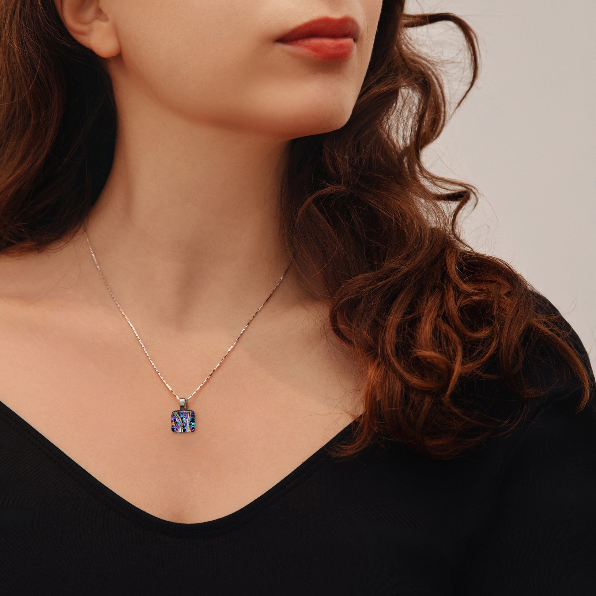 - Premium Craftsmanship: Expertly made with high-quality dichroic glass, paired with an 18-inch sterling silver chain for a refined look.
